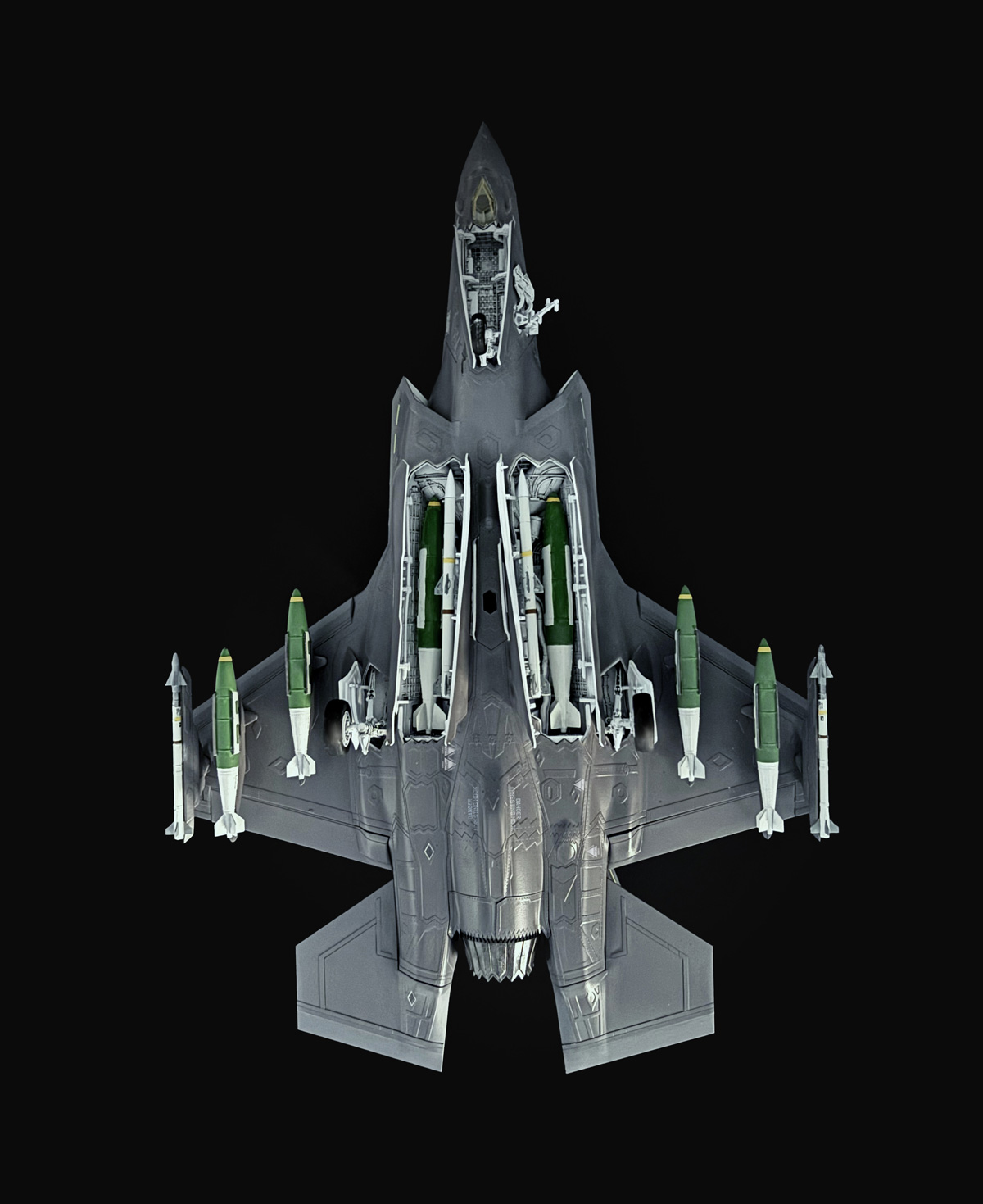 Cockpit, soute, trains, tuyère, moteur, gravure et formes sont très bien représentés et détaillés.